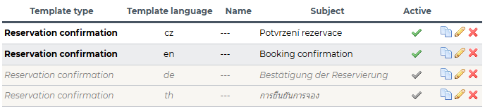 Templates of a given type can only be activated if the corresponding mailing is enabled in the Concierge settings by HotelTime Admin.