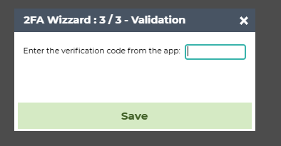 3. After clicking on Validate button, user will be asked to insert code from the application: