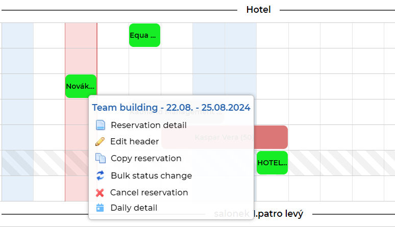 To view the quick menu, right-click on the reservation. The handy menu is the same for both overviews. The only difference is the "Day Detail" option, which allows you to go from the monthly overview to the first day of the booking in the daily overview.