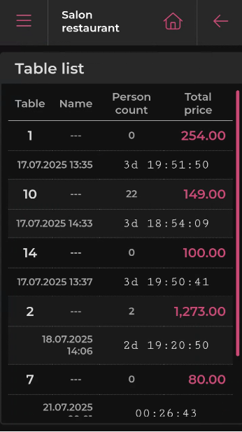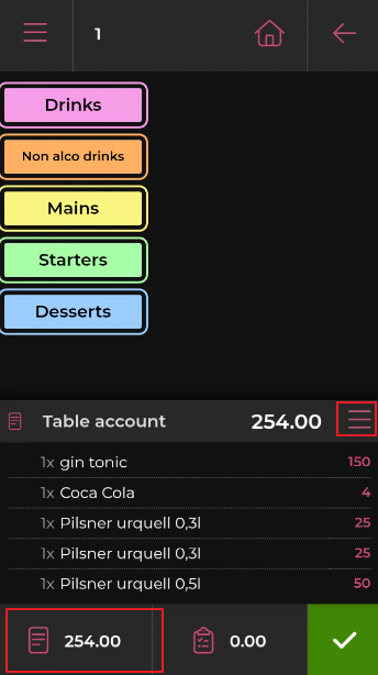 3. Another option is to proceed to bill payment via the main menu of the app – select Table List.